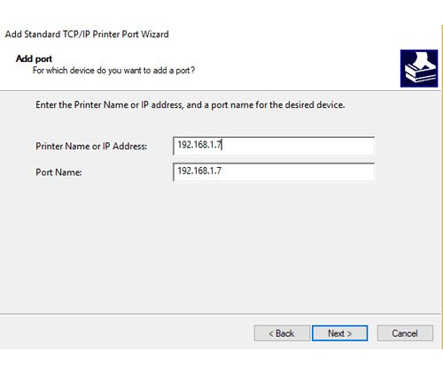 Trong cửa sổ mới, nhấp vào Standard TCP/IP Port, New Port, sau đó nhập địa điểm IP. Địa chỉ iPV4 của PC ở thí dụ trong bài là 192.168.1.8, vì thế chúng ta cũng đều có thể tạo địa chỉ IP của máy in là 192.168.1.7.