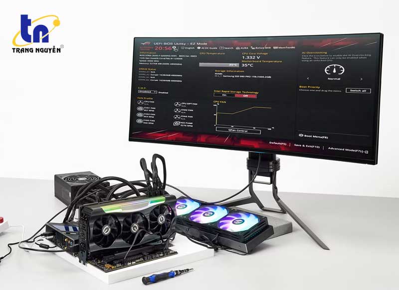 Bộ phận/dụng cụ: Bo mạch chủ đã lắp ráp CPU và bộ tản nhiệt CPU, RAM, GPU, PSU, tua vít, sổ tay hướng dẫn sử dụng bo mạch chủ, màn hình máy tính (đi kèm với GPU)