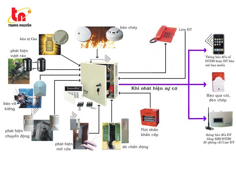 Được lắp trong trung tâm báo cháy với một Module SIM di động (hoặc line điện thoại) tích hợp.