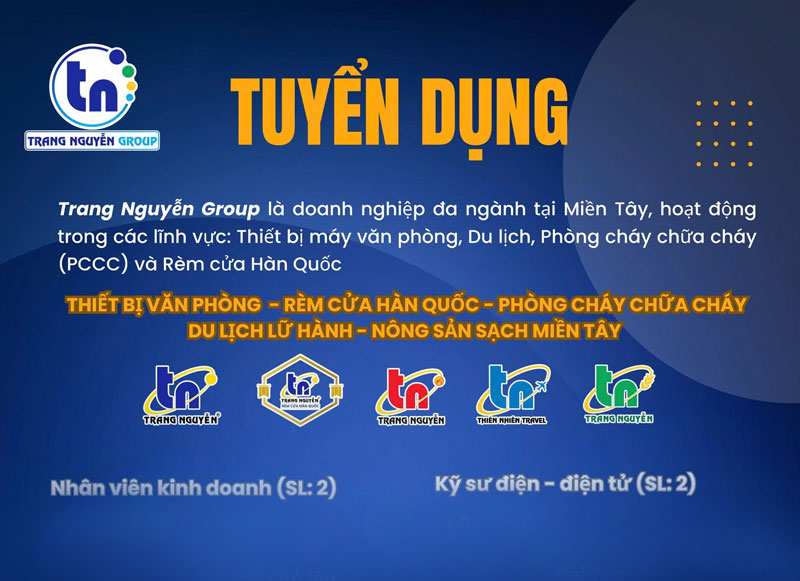 Công ty Cổ phần Đầu tư Trang Nguyễn đang từng bước mở rộng lĩnh vực và quy mô kinh doanh tại khu vực miền Tây. Nhằm đáp ứng nhu cầu phát triển, chúng tôi cần bổ sung nhân sự cho các vị trí sau: Nhân viên Kinh doanh - Nhân viên Marketing